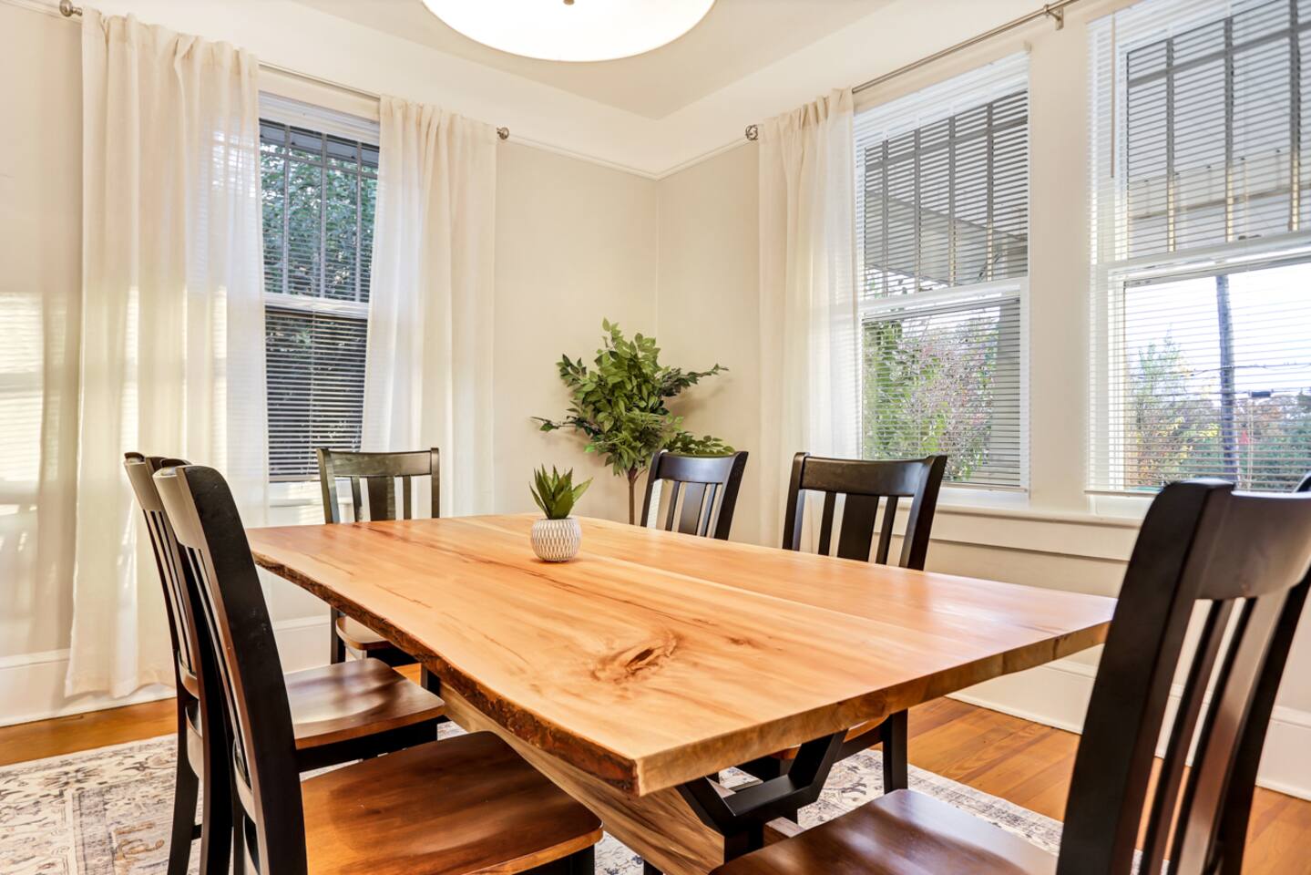 ✱The master BEDROOM offers an added level of luxury with its own private bathroom, complete with a refreshing rainfall shower head. Additionally, you'll find a spacious walk-in closet to conveniently store your belongings. Enjoy the comfort of two private rooms (not next to each other), each furnished with luxurious queen beds, ensuring a restful sleep. ✱The spacious DINING ROOM space with an artisan living edge table can also be used as a workspace. Let us know, and we can provide extension cords. ✱Fully stocked KITCHEN, equipped with all the essentials you need. Indulge in premium coffee and organic tea options. Enhance your culinary creations with various spices, along with readily available salt, pepper, and olive oil. ✱Stay ENTERTAINED with games and TVs available in both bedrooms and the shared living room space. ✱Relax outside and enjoy nature and/or a meal on the backyard ARTISAN TABLE SWING ✱Prioritize your WELLBEING with our selection of natural soap products, thoughtfully curated to be free from Parabens and other harmful ingredients. Your comfort and health are our utmost priority. ✱CHILD FRIENDLY! Pack and Play, High Chair, and child-safe dishware provided. Accommodations for SIX PEOPLE with air-mattress provided. Please ensure to provide the accurate number of guests when booking. Failure to do so may result in insufficient bedding and towels for all individuals staying. Instant check-in with electronic keypad access. Check-in anytime after 4:00 pm. NO SMOKING inside or outside of the property! Additional billing will occur if any smoke smell is found after the stay.